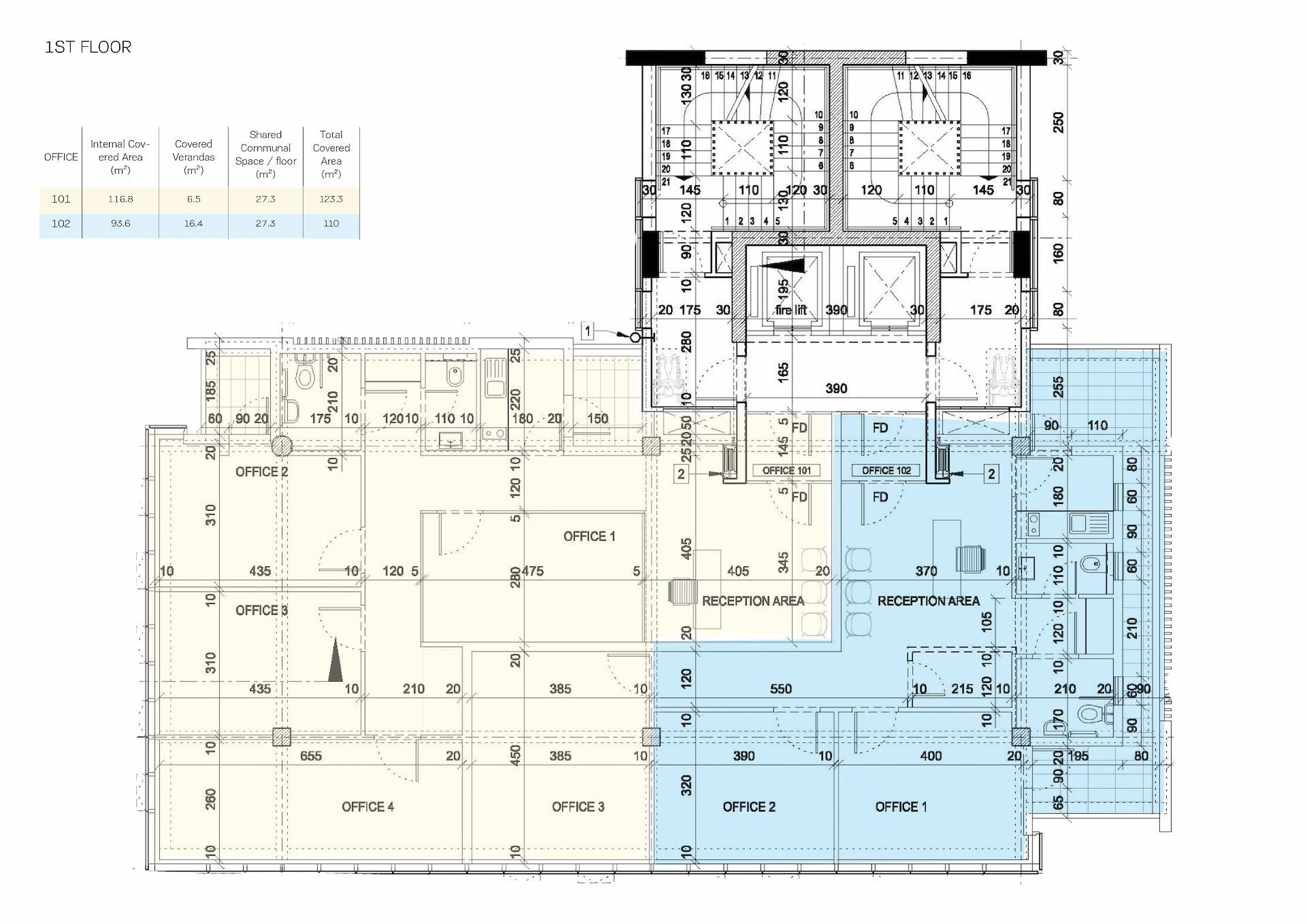 | 101 | Office | 8 | 117 m² | 6 m² | 123 m² | 27 m² | |