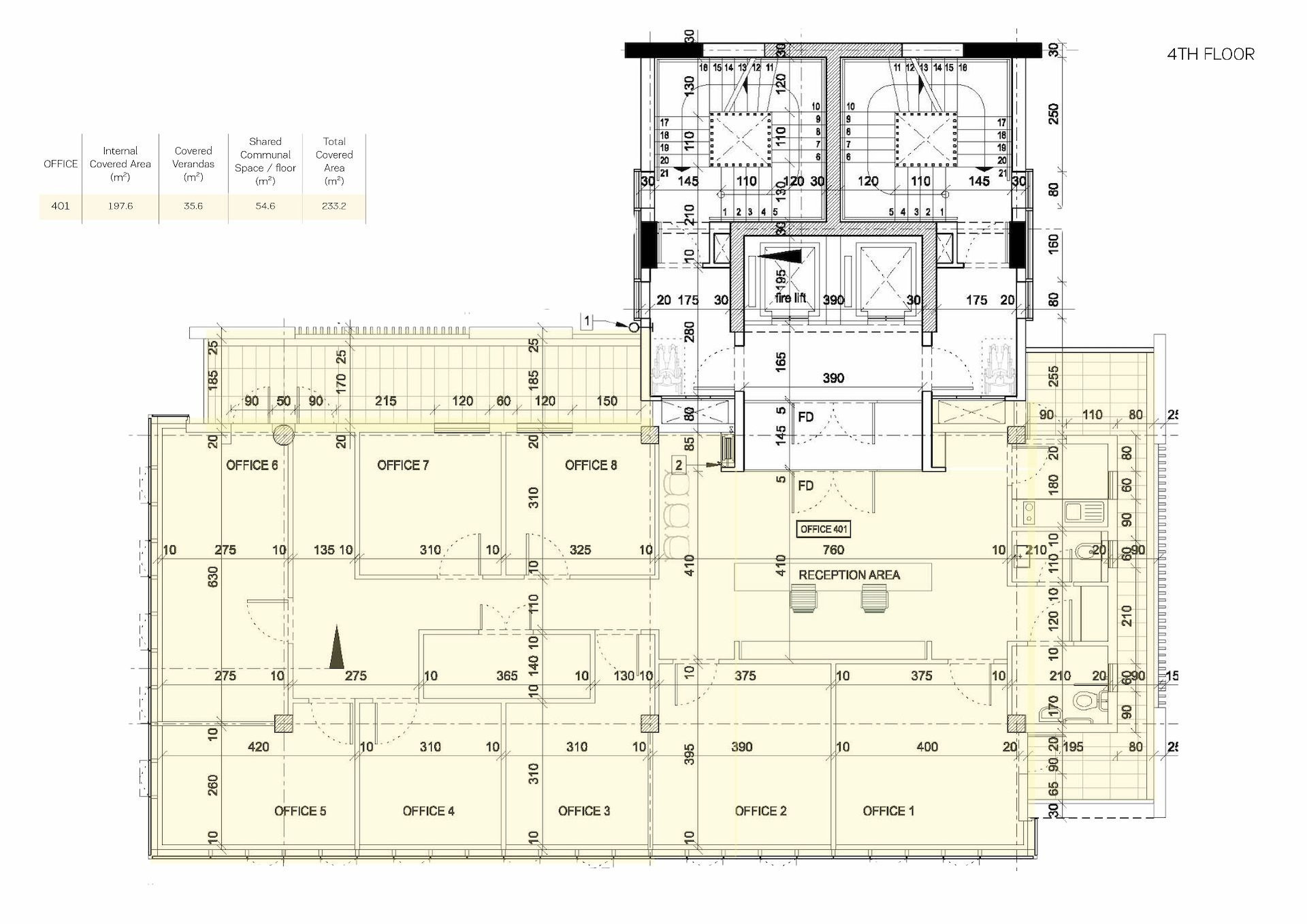 | 401 | Office | 8 | 198 m² | 36 m² | 234 m² | 55 m² | |