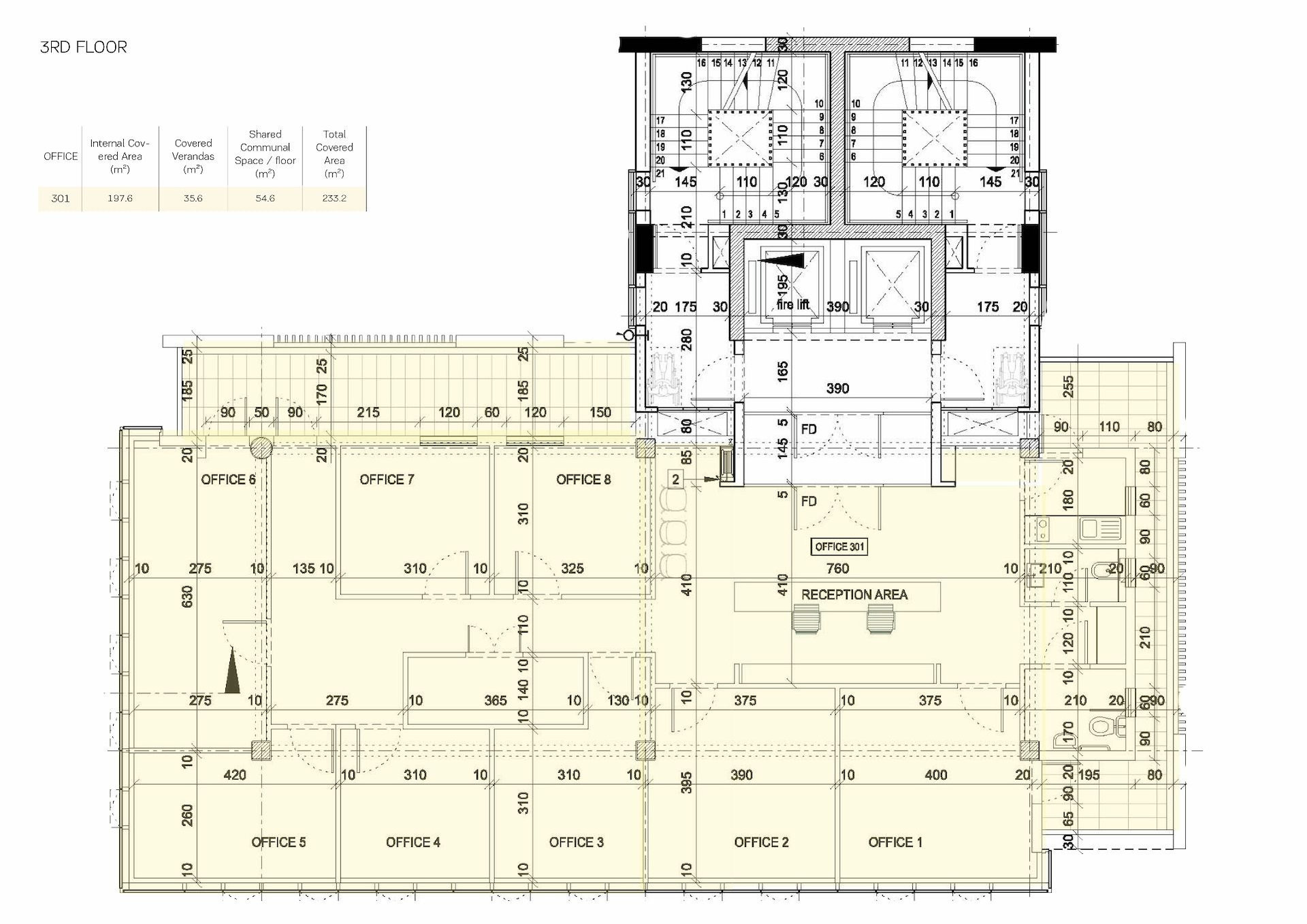 | 301 | Office | 8 | 198 m² | 36 m² | 234 m² | 55 m² | |