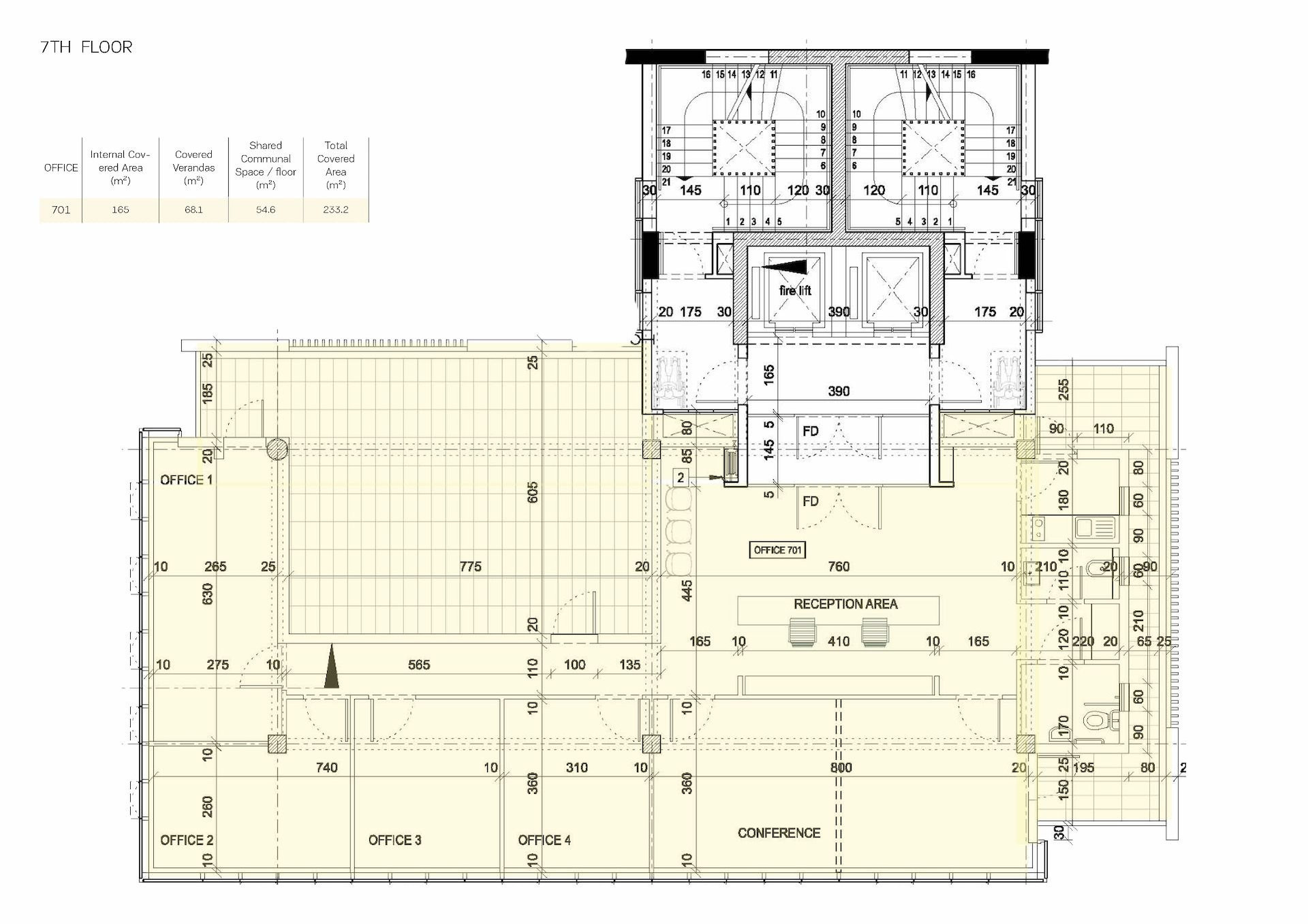 | 701 | Office | 8 | 165 m² | 68 m² | 233 m² | 55 m² | |