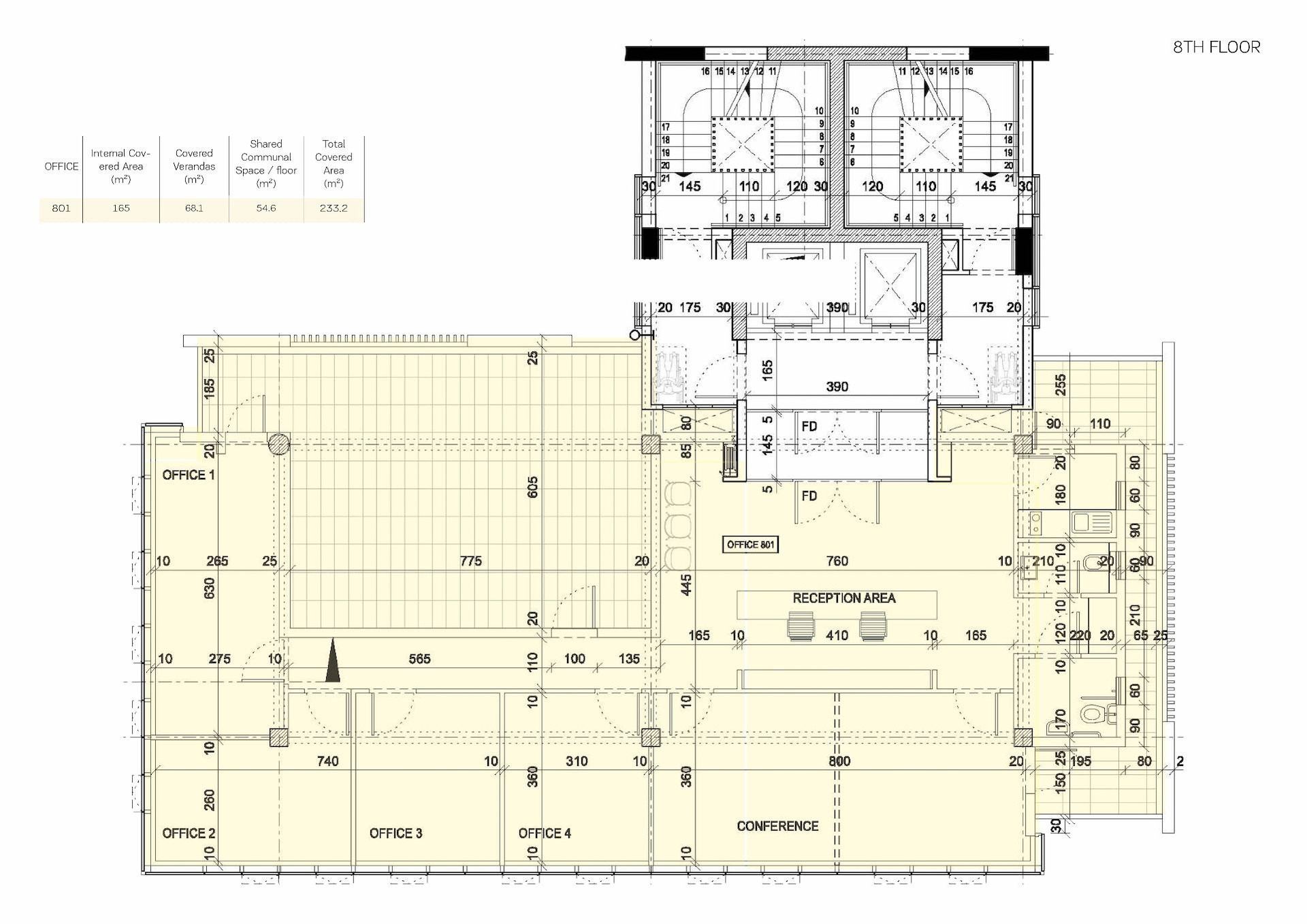 | 801 | Office | 8 | 165 m² | 68 m² | 233 m² | 55 m² | |