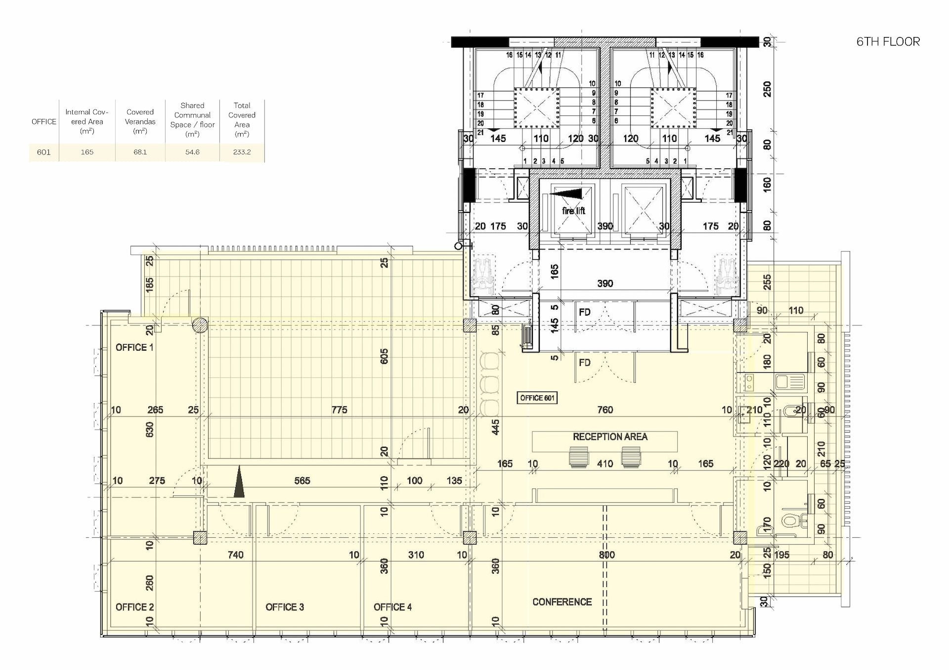| 601 | Office | 8 | 165 m² | 68 m² | 233 m² | 55 m² | |