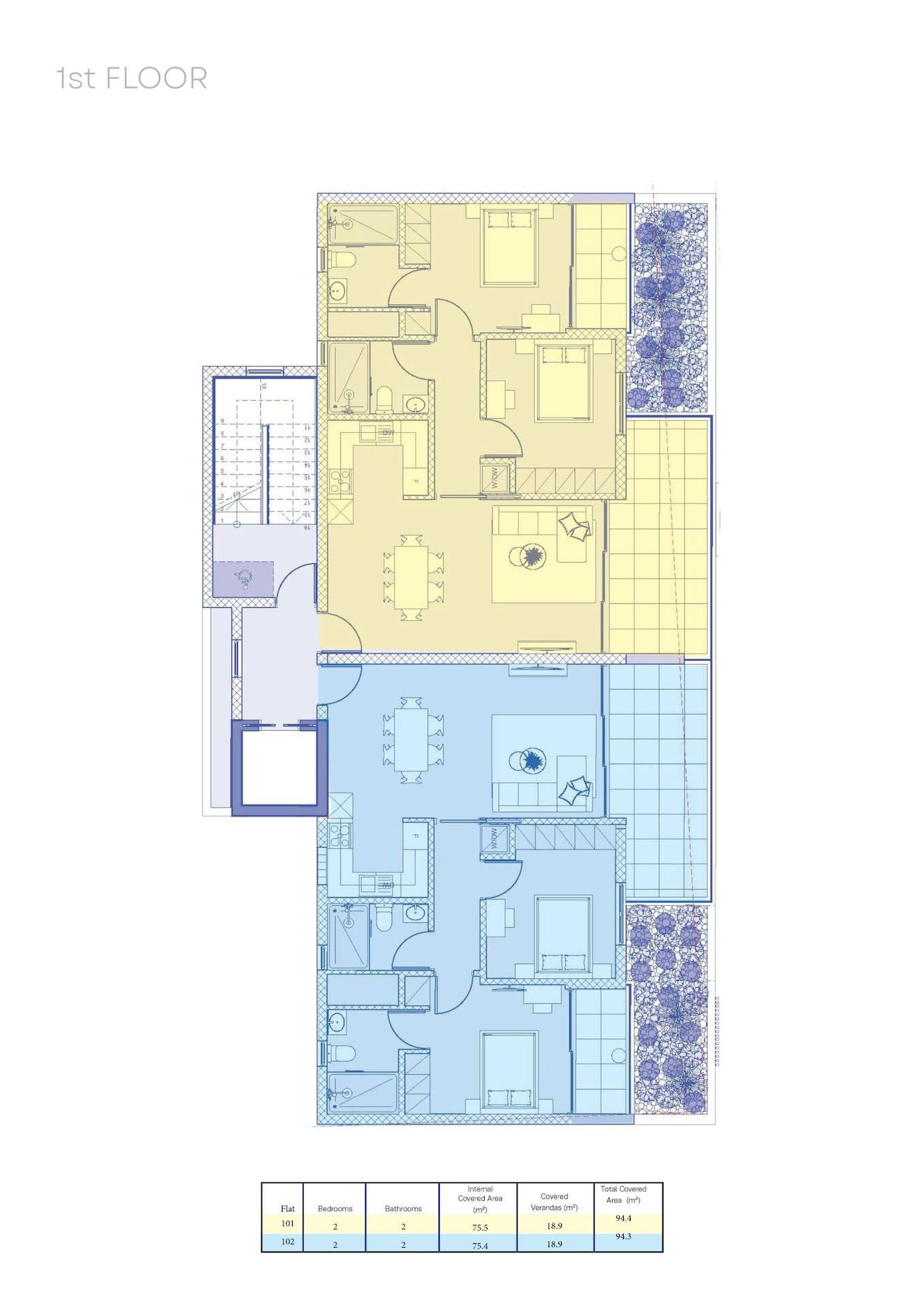 | 101 | Apartment | 3 | - | 2 | 2 | 75 m² | 19 m² | 94 m² | - | |