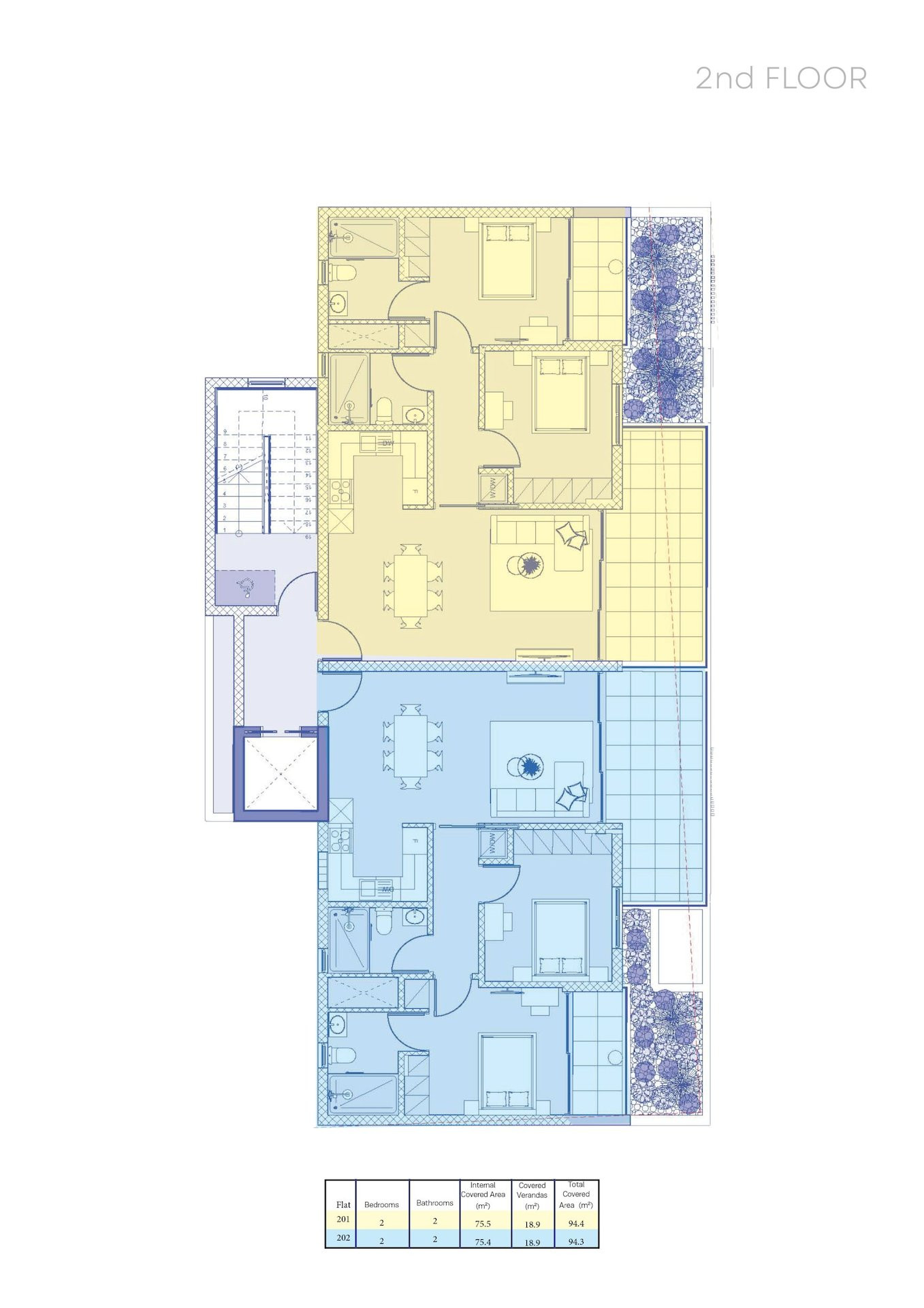 | 201 | Apartment | 3 | 1 | 2 | 2 | 75 m² | 19 m² | 94 m² | - | |
