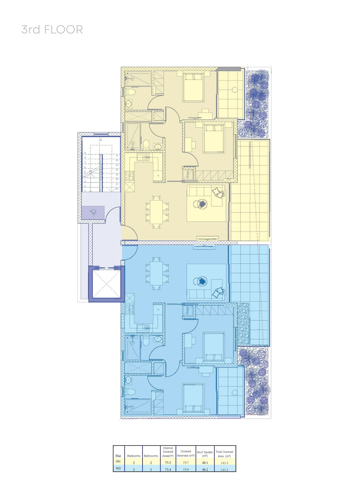| 302 | Apartment | 3 | 1 | 2 | 2 | 75 m² | 19 m² | 142 m² | 48 m² |